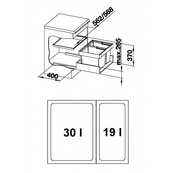 Rozložení nádob: 1 x 30 l + 1 x 19 l