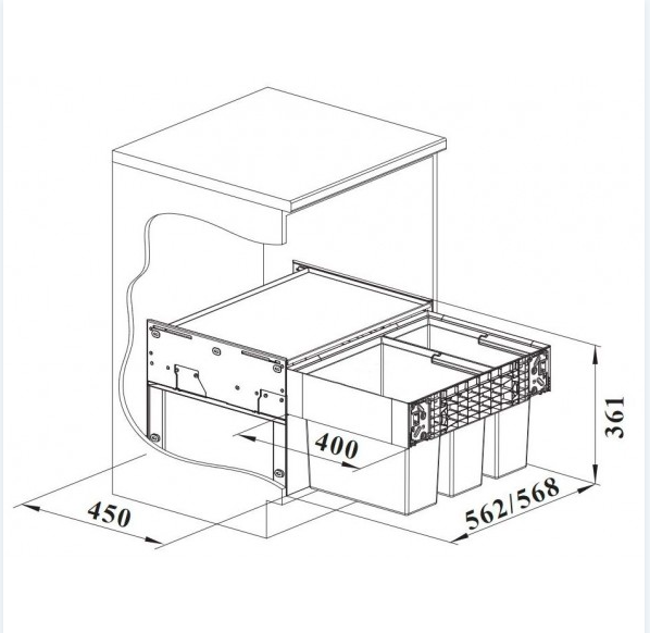 Rozložení nádob: 1 x 30 l, 1 x 19 l Pro skříňku 60 cm Kvalitní plnovýsuv s tlumením Nosnost 50 kg Moderní, harmonický a funkční design Integrovaná konstrukce bez zbytečných zá ...Více informací