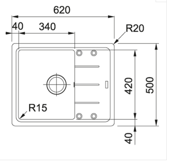 Spodní skříňka 450.00 mm Ventil 3 1/2'' sítkový Délka 620.00 mm Šířka 500.00 mm Rozměr dřezu 340.00 mm Rozměr dřezu 420.00 mm Hloubka dřezu 200.00 mm Výřez 600.00 mm Výřez 480 ...Více informací