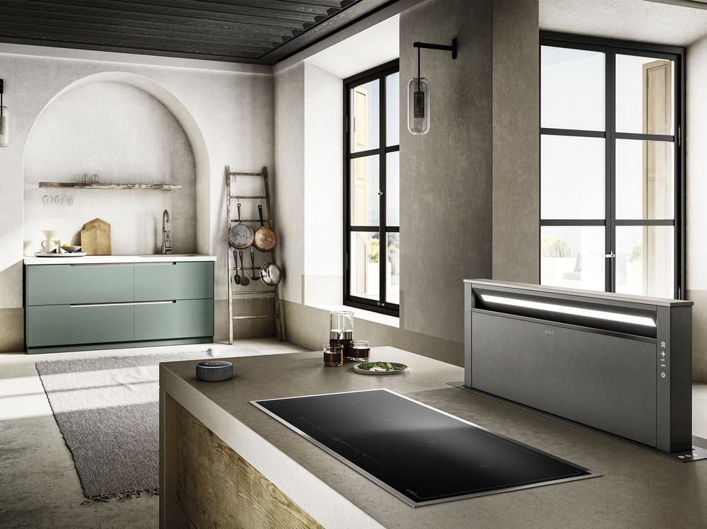Maximální svoboda stylu designu, prostoru a ovládání odsavače par, který se vysune z pracovní kuchyňské desky pouze pokud je opravdu potřebný.