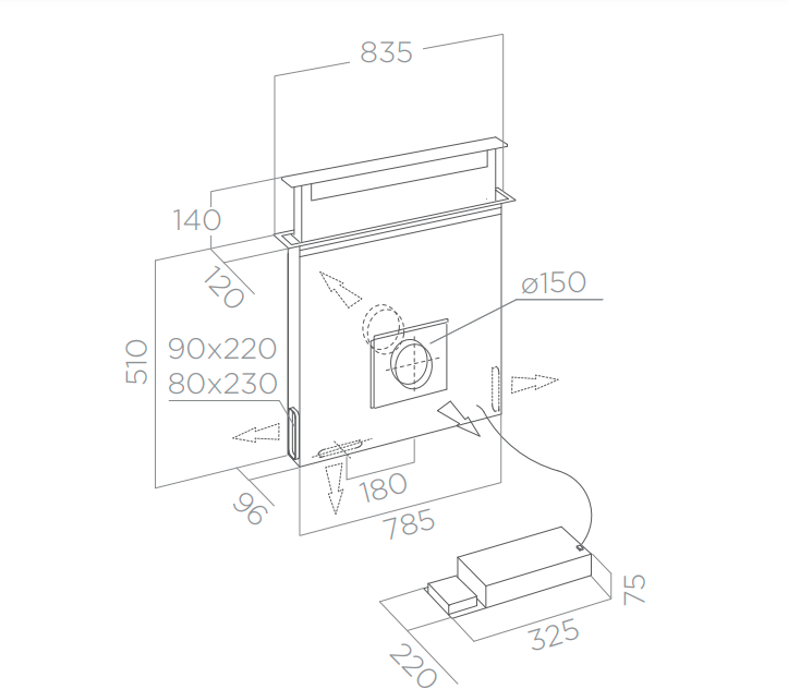 | Průměr odtahu mm | 150 |