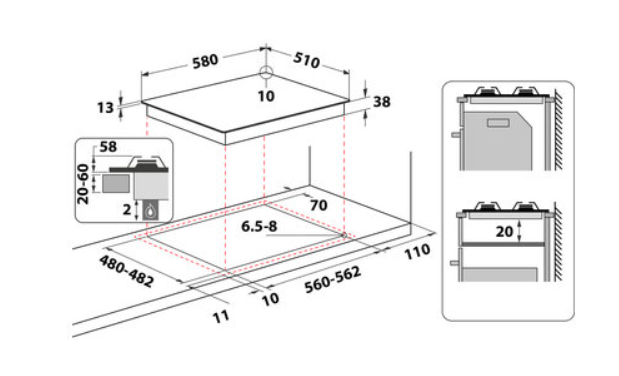 | Šířka pro vestavbu cm | 56 |