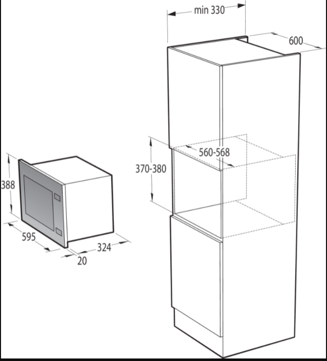 Maximální výška otvoru pro vestavění 380 mm