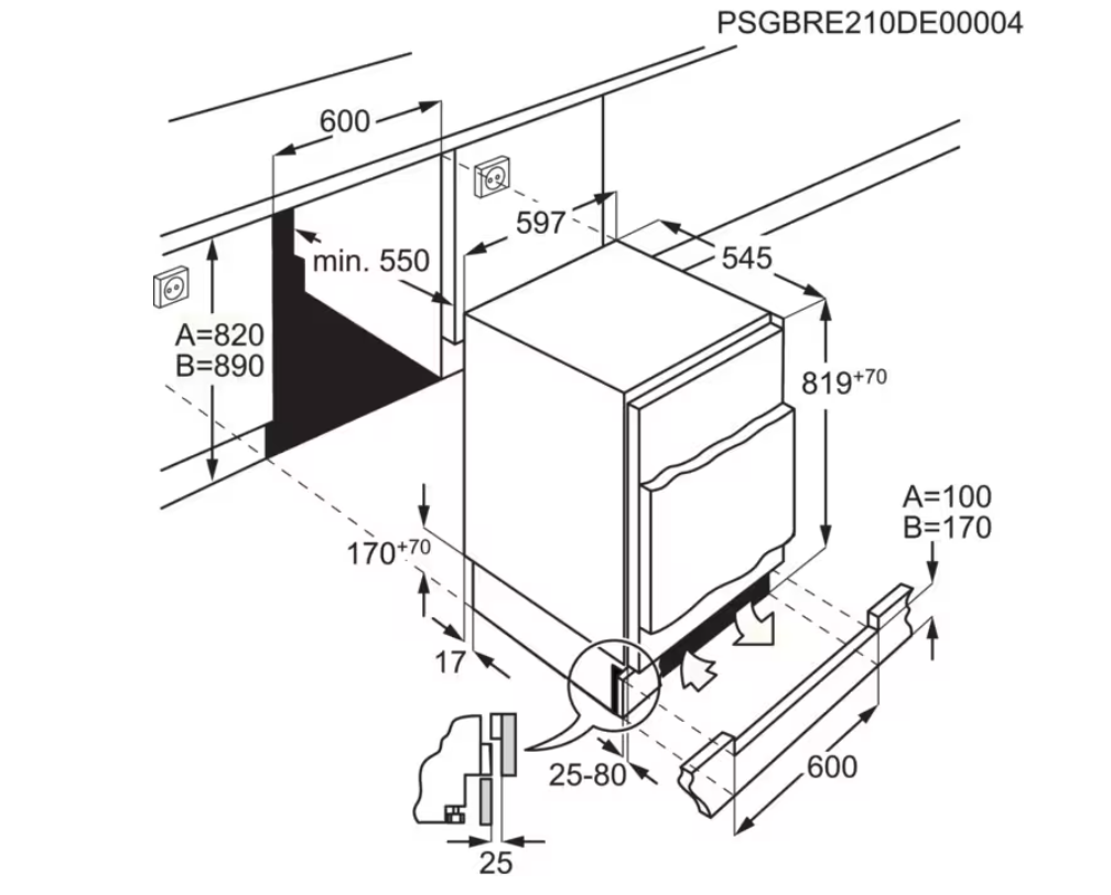 Vestavné rozměry (mm): 820 x 600 x 550
