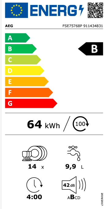 Kapacita mytí: 14: Podle normy IEC pro sadu nádobí. Jednou sadou nádobí je podle této normy: talíř, hluboký talíř, dezertní talíř, sklenice, čajový šálek s podšálkem, nůž, vidlička, polévková lžíce, dezertní lžíce a lžička.