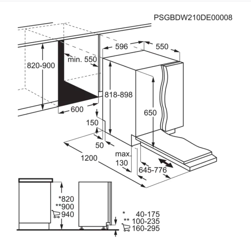 Prostor pro instalaci VxŠxH (mm): 820-900x600x550