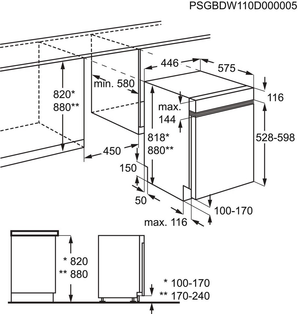 Vestavné rozměry V(min/max)xŠxH (mm): 820/900 x 450 x 550