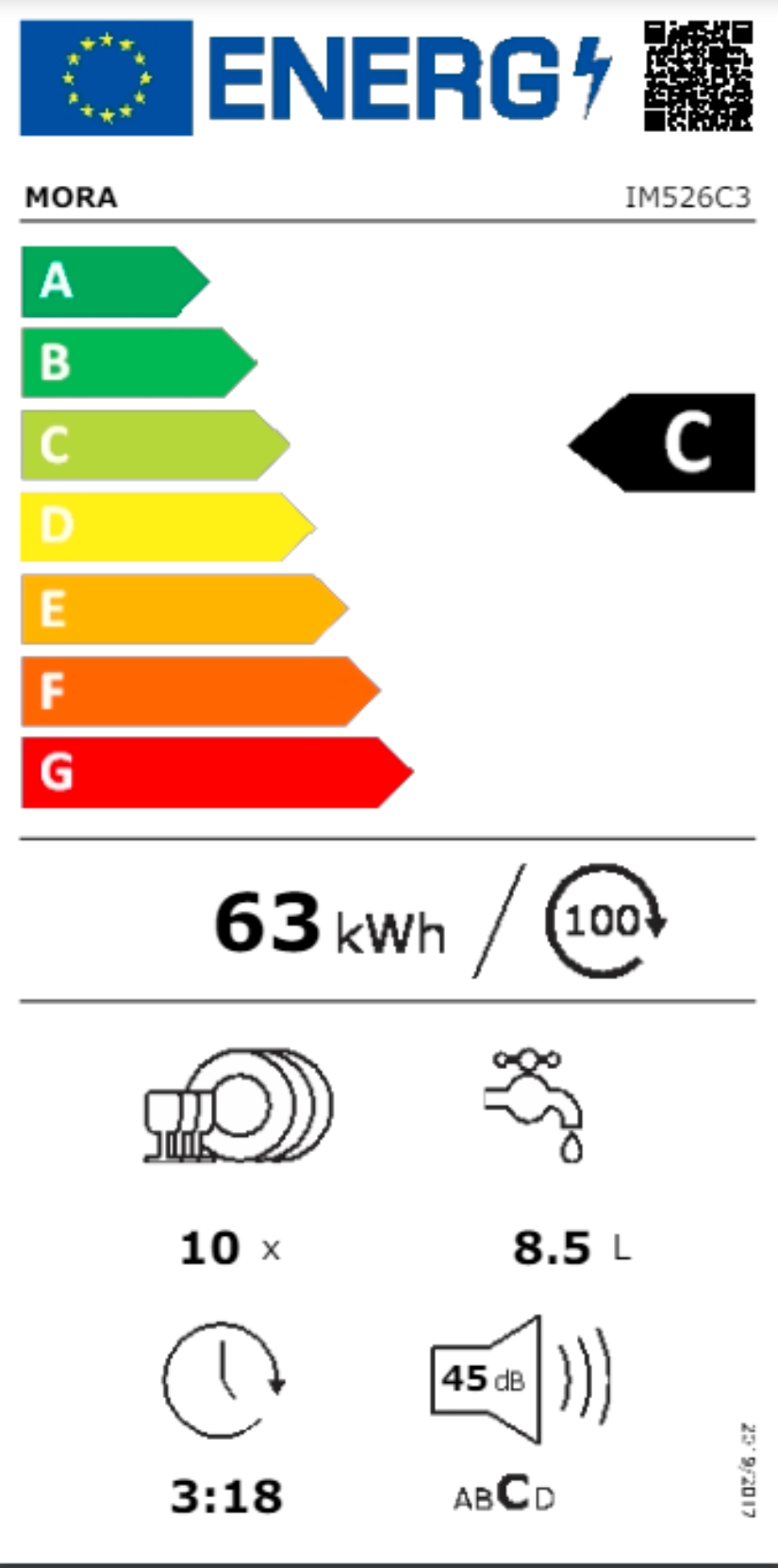 spotřeba energie 63 kWh/100 cyklů