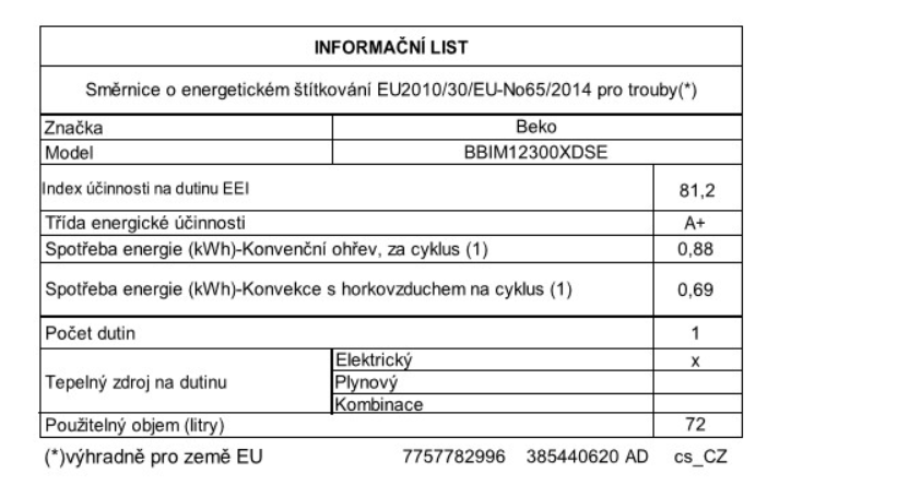 | Objem trouby L | 72 |