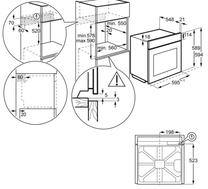 | Výška pro vestavbu cm | 60 |