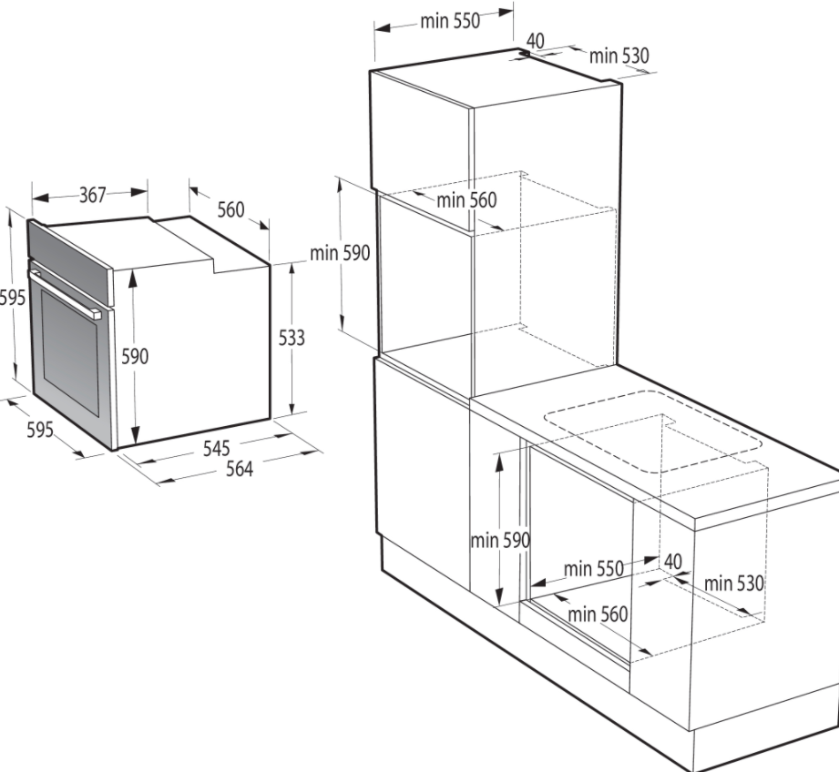 | Výška pro vestavbu cm | 59 |